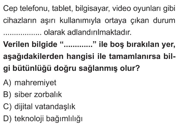 6. Sınıf Dijitalleşme Ve Teknolojik Gelişmelerin Vatandaşlık Hak Ve Sorumluluklarına Etkileri Test 3