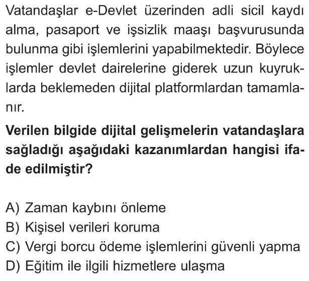6. Sınıf Dijitalleşme Ve Teknolojik Gelişmelerin Vatandaşlık Hak Ve Sorumluluklarına Etkileri Test 3