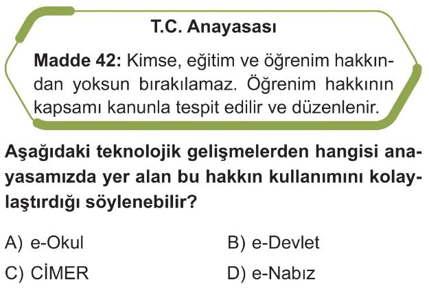6. Sınıf Dijitalleşme Ve Teknolojik Gelişmelerin Vatandaşlık Hak Ve Sorumluluklarına Etkileri Test 5