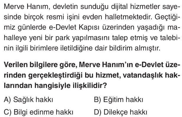 6. Sınıf Dijitalleşme Ve Teknolojik Gelişmelerin Vatandaşlık Hak Ve Sorumluluklarına Etkileri Test 5