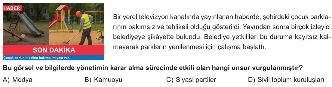 6. Sınıf Yaşayan Demokrasimiz Öğrenme Alanı Değerlendirme Test 1