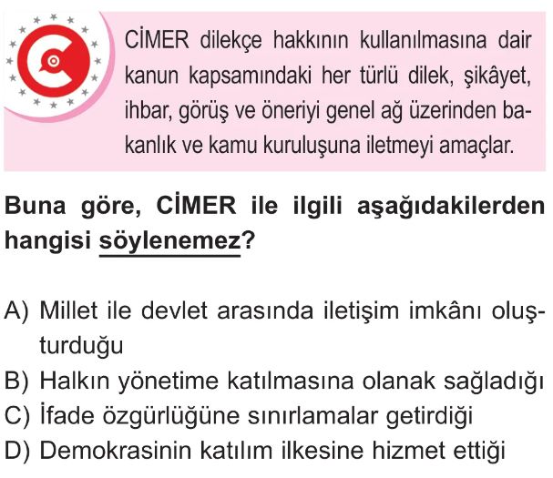 6. Sınıf Yaşayan Demokrasimiz Öğrenme Alanı Değerlendirme Test 1
