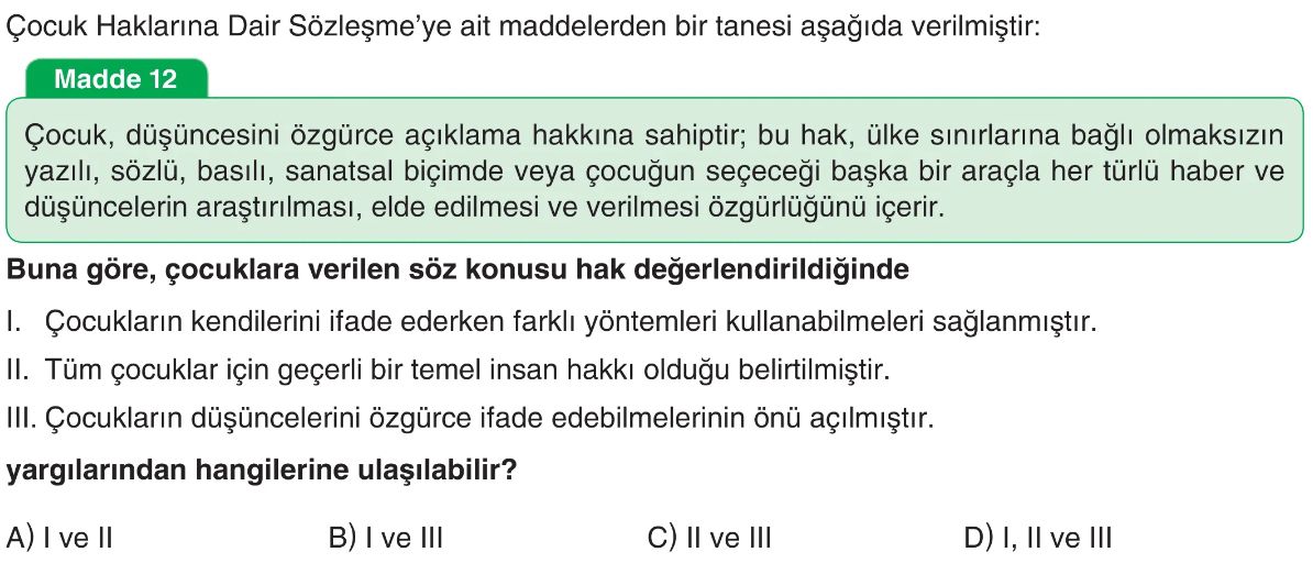 6. Sınıf Yaşayan Demokrasimiz Öğrenme Alanı Değerlendirme Test 2