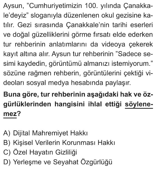 6. Sınıf Yaşayan Demokrasimiz Öğrenme Alanı Değerlendirme Test 2