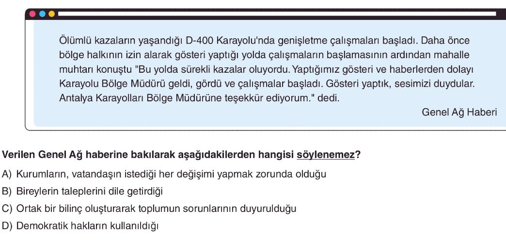 6. Sınıf Yaşayan Demokrasimiz Öğrenme Alanı Değerlendirme Test 2