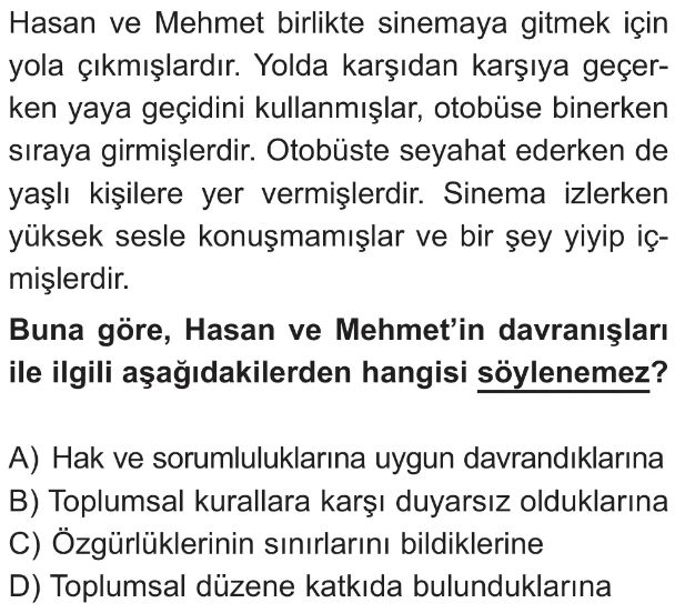 6. Sınıf Yaşayan Demokrasimiz Öğrenme Alanı Değerlendirme Test 2