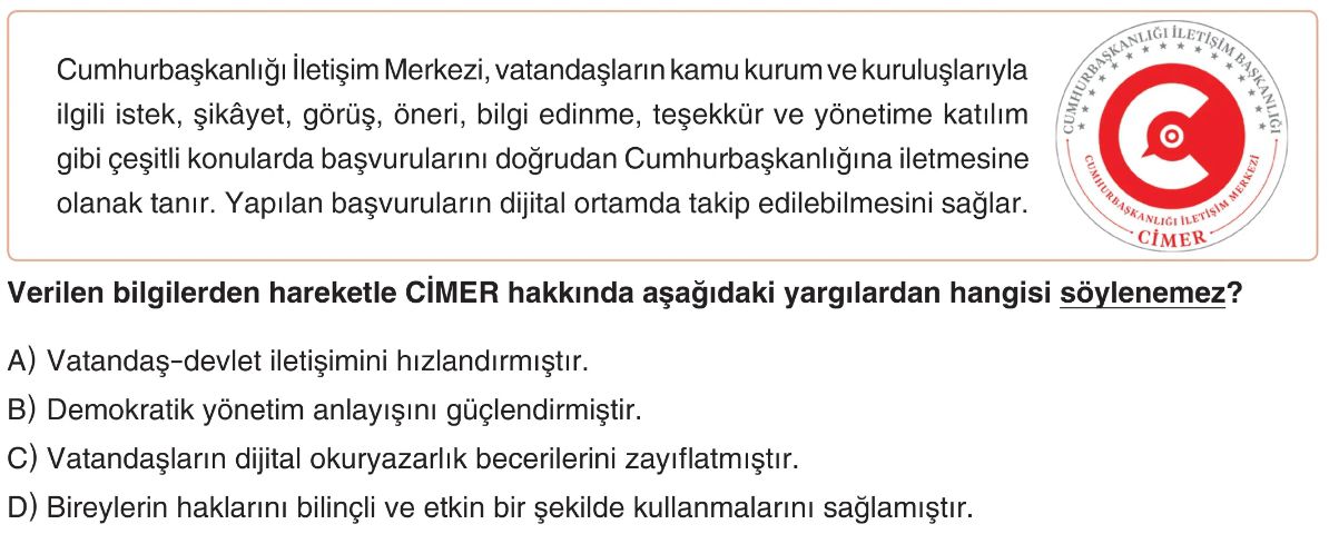 6. Sınıf Yaşayan Demokrasimiz Öğrenme Alanı Değerlendirme Test 3