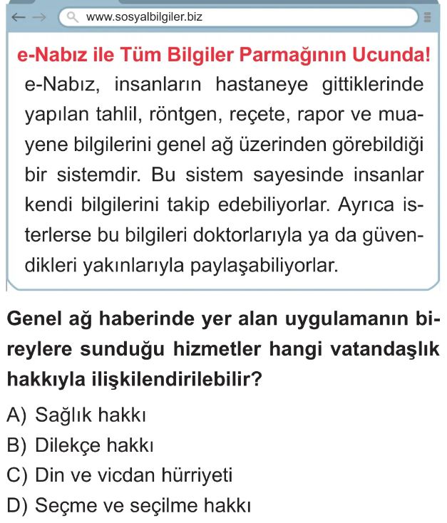 6. Sınıf Yaşayan Demokrasimiz Öğrenme Alanı Değerlendirme Test 3