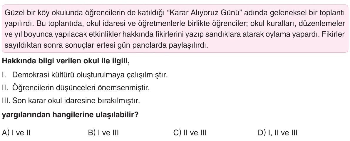6. Sınıf Yaşayan Demokrasimiz Öğrenme Alanı Değerlendirme Test 4