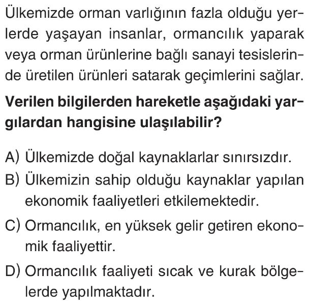 6. Sınıf Ülkemizin Kaynakları Ve Ekonomik Faaliyetler Test 1