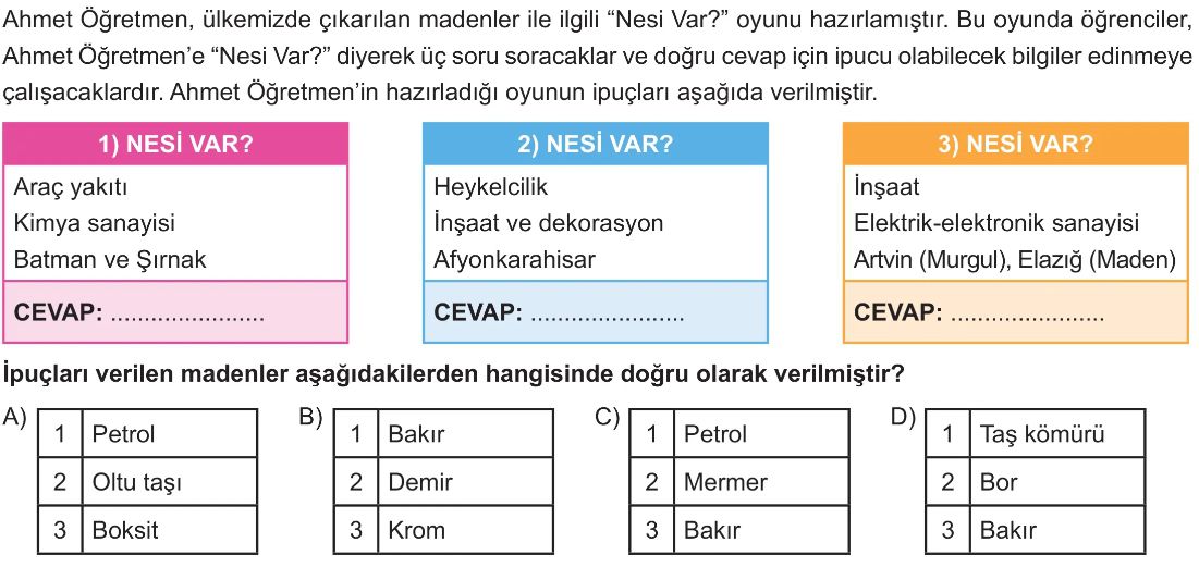 6. Sınıf Ülkemizin Kaynakları Ve Ekonomik Faaliyetler Test 1