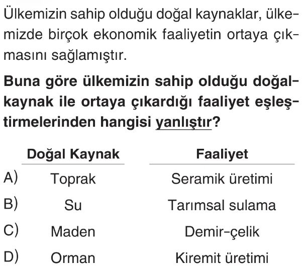 6. Sınıf Ülkemizin Kaynakları Ve Ekonomik Faaliyetler Test 1