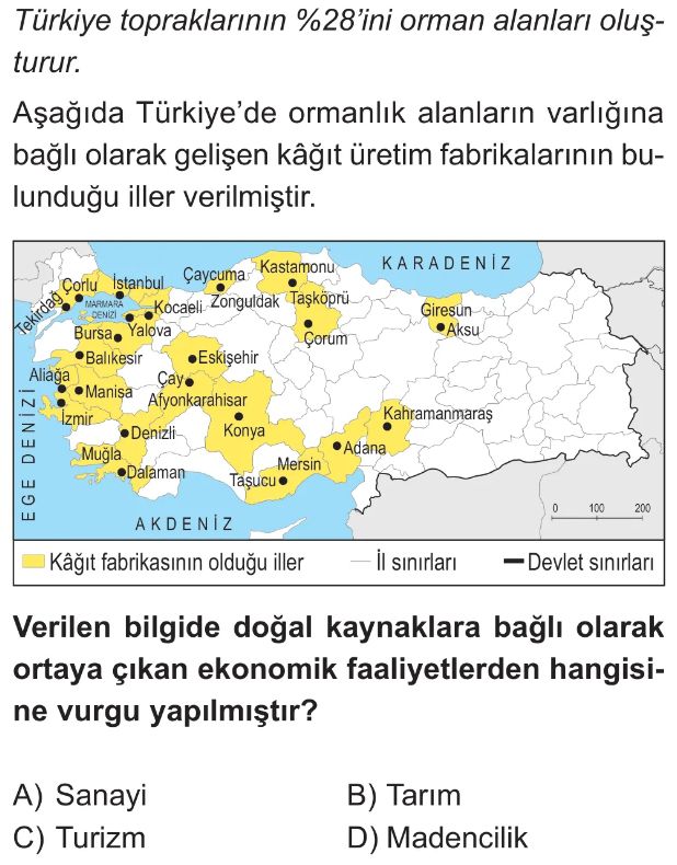 6. Sınıf Ülkemizin Kaynakları Ve Ekonomik Faaliyetler Test 2