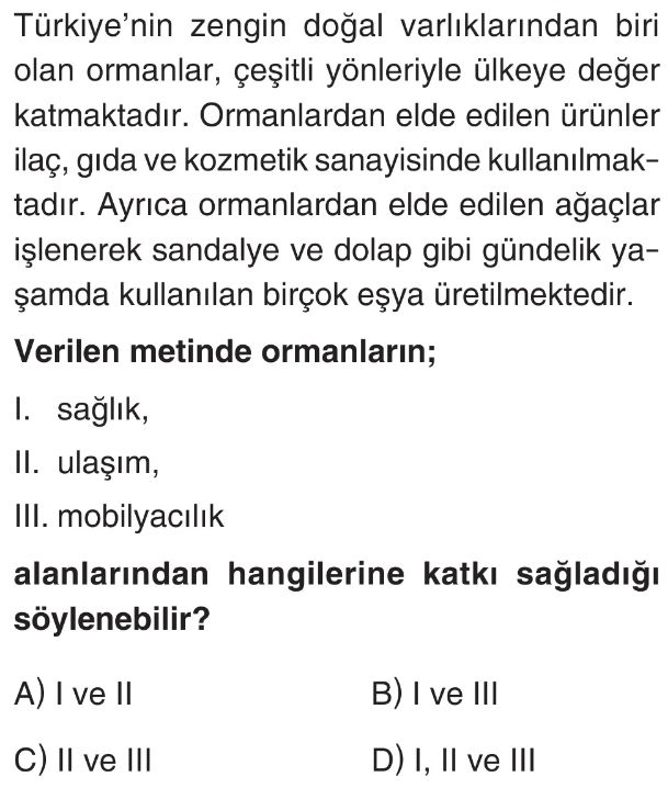 6. Sınıf Ülkemizin Kaynakları Ve Ekonomik Faaliyetler Test 2