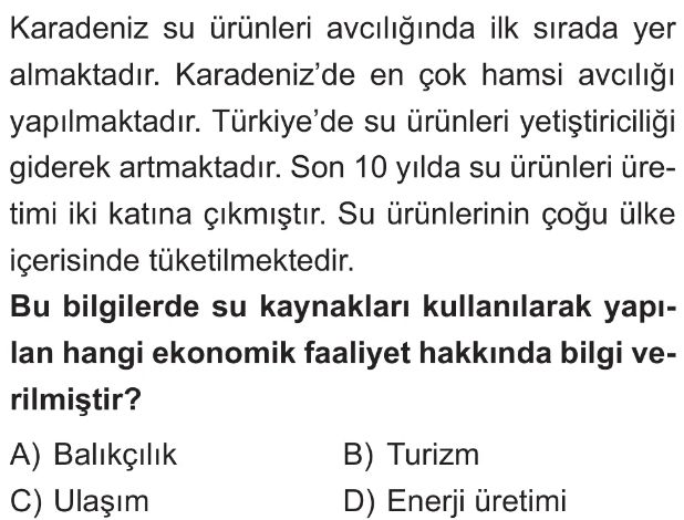 6. Sınıf Ülkemizin Kaynakları Ve Ekonomik Faaliyetler Test 3