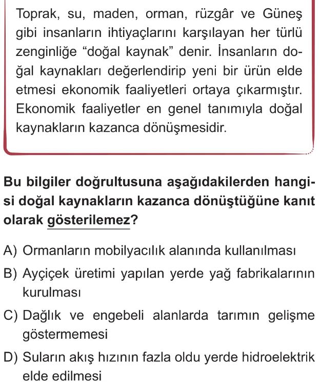 6. Sınıf Ülkemizin Kaynakları Ve Ekonomik Faaliyetler Test 4