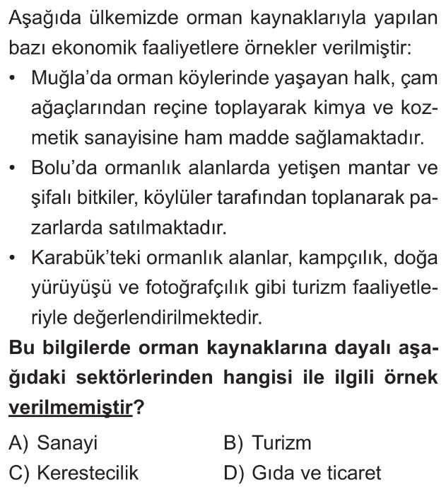 6. Sınıf Ülkemizin Kaynakları Ve Ekonomik Faaliyetler Test 4