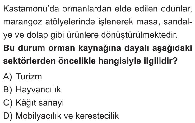 6. Sınıf Ülkemizin Kaynakları Ve Ekonomik Faaliyetler Test 4