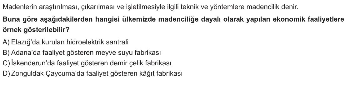 6. Sınıf Ülkemizin Kaynakları Ve Ekonomik Faaliyetler Test 4