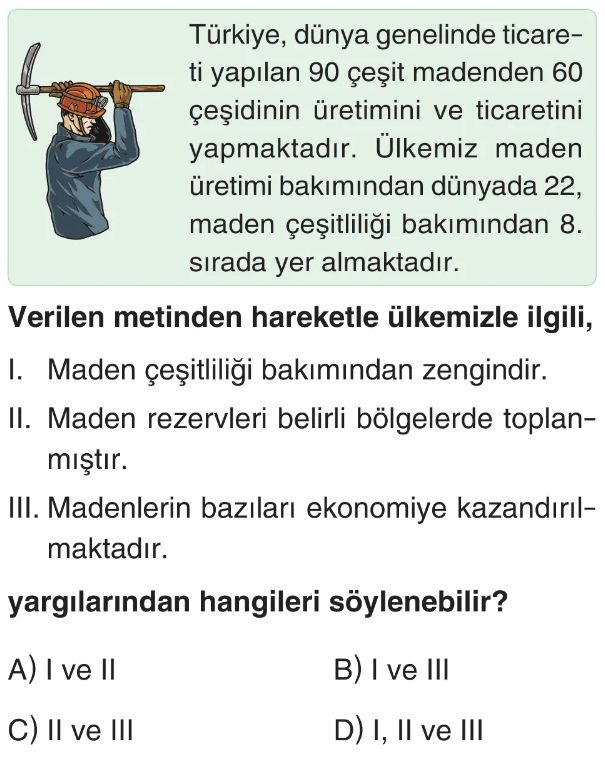 6. Sınıf Ülkemizin Kaynakları Ve Ekonomik Faaliyetler Test 5