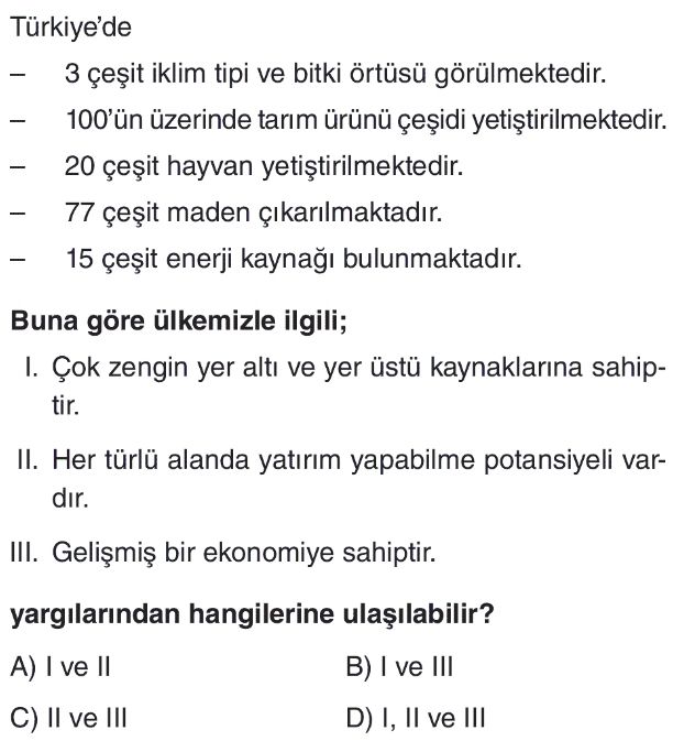 6. Sınıf Ülkemizin Kaynakları Ve Ekonomik Faaliyetler Test 5