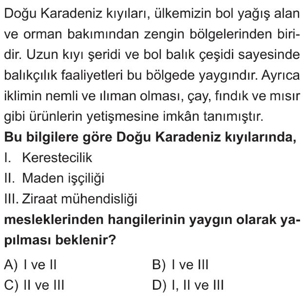 6. Sınıf Ekonomik Faaliyetler Ve Meslekler Test 3