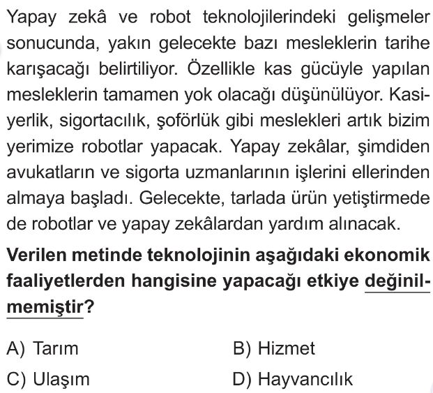 6. Sınıf Ekonomik Faaliyetler Ve Meslekler Test 4