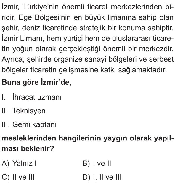 6. Sınıf Ekonomik Faaliyetler Ve Meslekler Test 5