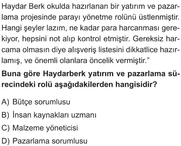 6. Sınıf Tasarlanan Bir Ürünün Yatırım Ve Pazarlama Süreci Test 2
