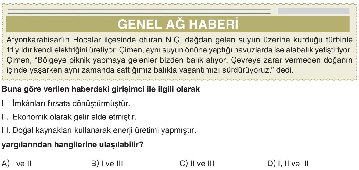 6. Sınıf Tasarlanan Bir Ürünün Yatırım Ve Pazarlama Süreci Test 3
