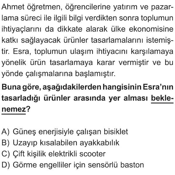 6. Sınıf Tasarlanan Bir Ürünün Yatırım Ve Pazarlama Süreci Test 3