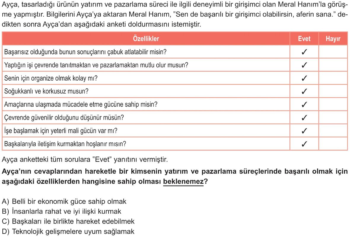 6. Sınıf Tasarlanan Bir Ürünün Yatırım Ve Pazarlama Süreci Test 3