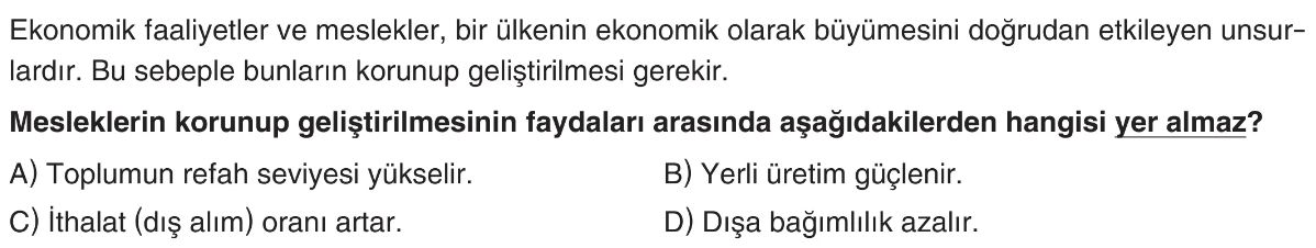 6. Sınıf Hayatımızdaki Ekonomi Öğrenme Alanı Değerlendirme Test 1
