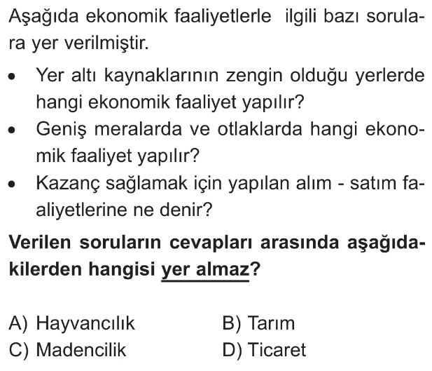 6. Sınıf Hayatımızdaki Ekonomi Öğrenme Alanı Değerlendirme Test 3