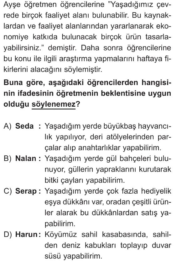 6. Sınıf Hayatımızdaki Ekonomi Öğrenme Alanı Değerlendirme Test 3