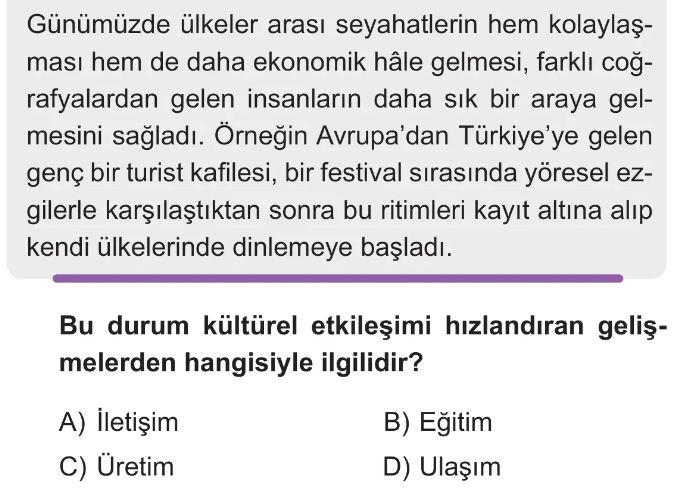 6. Sınıf Ulaşım Ve İletişim Teknolojilerinin Kültürel Etkileşimdeki Rolü Test 1