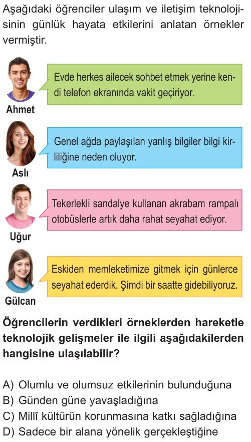 6. Sınıf Ulaşım Ve İletişim Teknolojilerinin Kültürel Etkileşimdeki Rolü Test 1