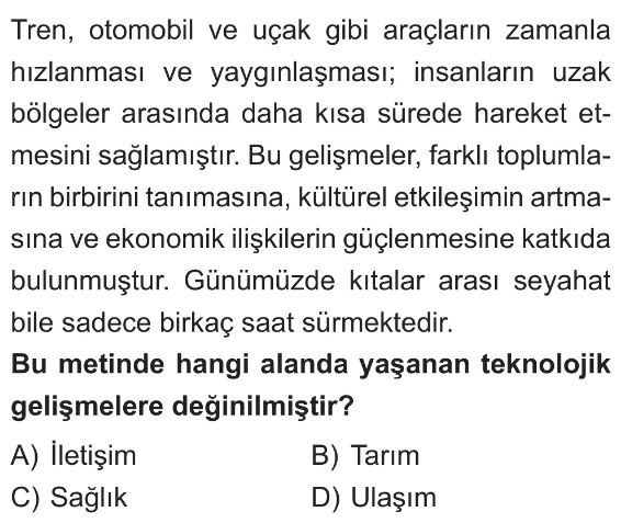 6. Sınıf Ulaşım Ve İletişim Teknolojilerinin Kültürel Etkileşimdeki Rolü Test 2