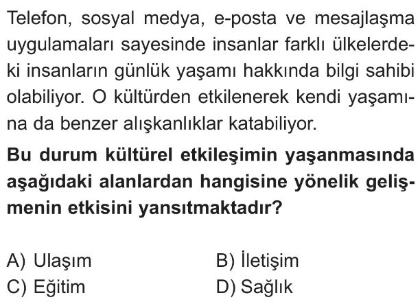 6. Sınıf Ulaşım Ve İletişim Teknolojilerinin Kültürel Etkileşimdeki Rolü Test 2