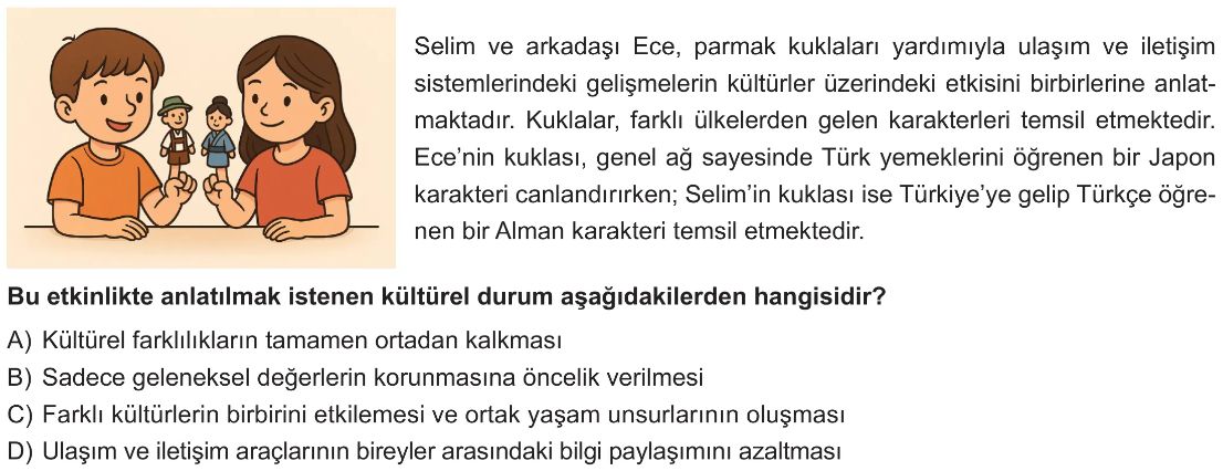 6. Sınıf Ulaşım Ve İletişim Teknolojilerinin Kültürel Etkileşimdeki Rolü Test 3