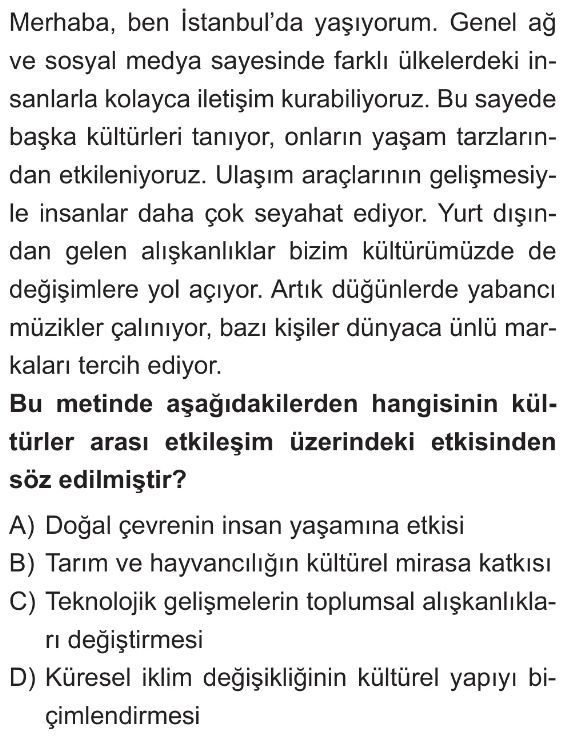 6. Sınıf Ulaşım Ve İletişim Teknolojilerinin Kültürel Etkileşimdeki Rolü Test 3