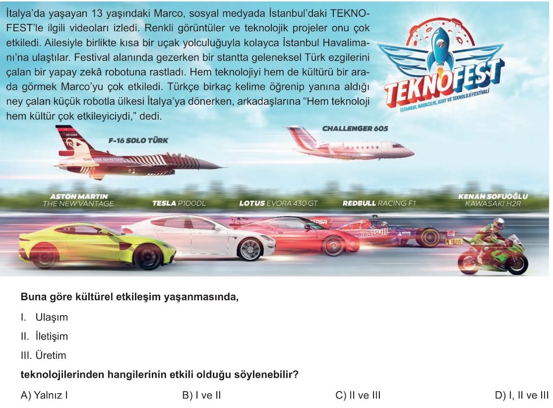 6. Sınıf Ulaşım Ve İletişim Teknolojilerinin Kültürel Etkileşimdeki Rolü Test 5