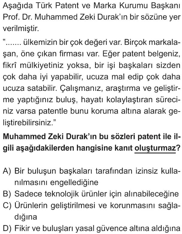 6. Sınıf Telif Ve Patent Süreci Test 1