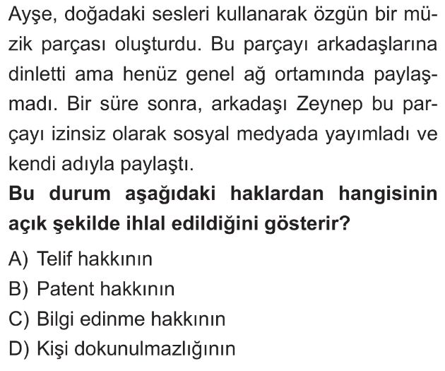 6. Sınıf Telif Ve Patent Süreci Test 2