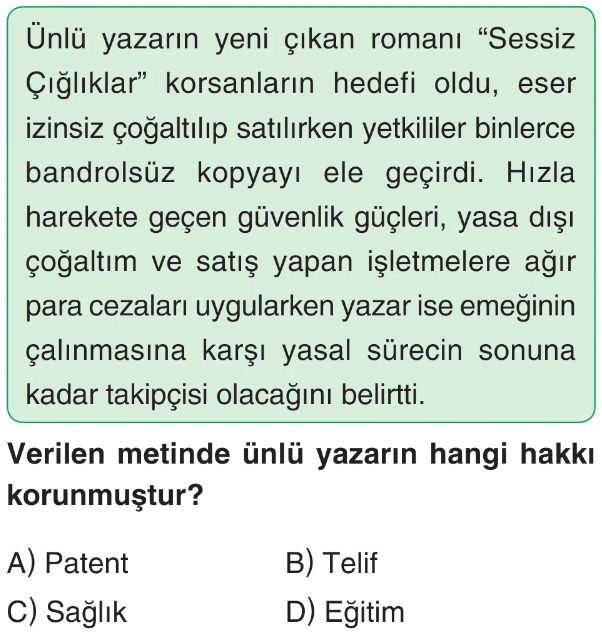 6. Sınıf Telif Ve Patent Süreci Test 2