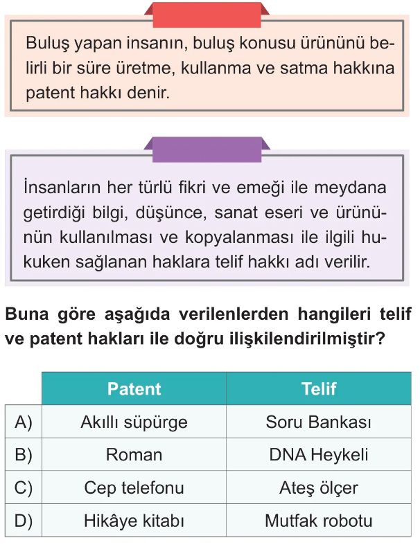 6. Sınıf Telif Ve Patent Süreci Test 3