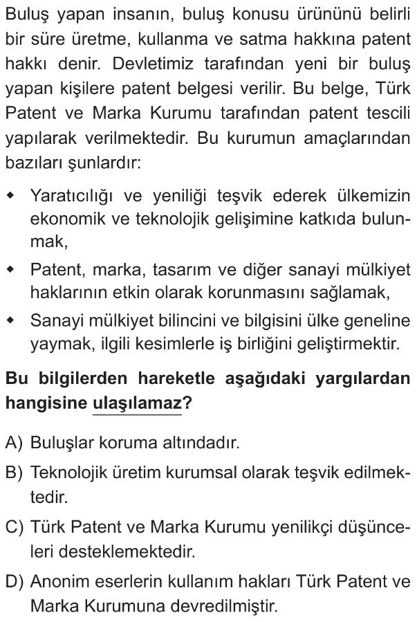 6. Sınıf Telif Ve Patent Süreci Test 3