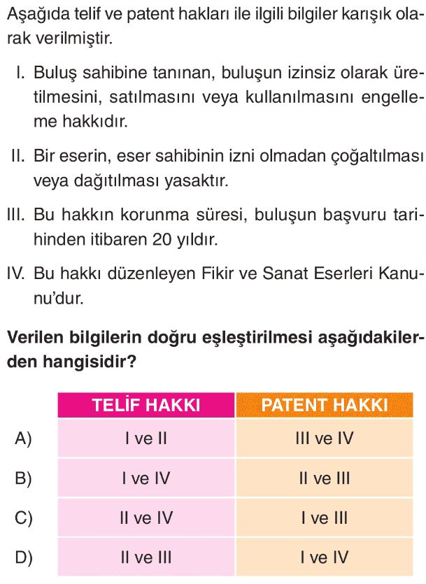 6. Sınıf Telif Ve Patent Süreci Test 3