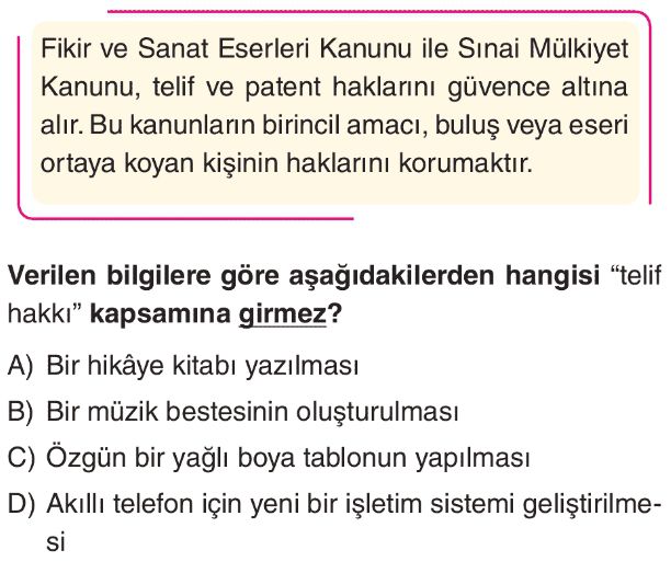 6. Sınıf Telif Ve Patent Süreci Test 4