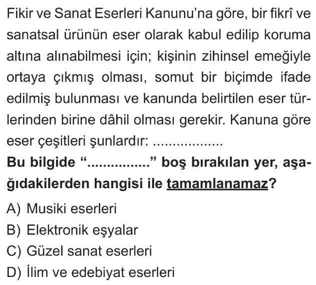 6. Sınıf Telif Ve Patent Süreci Test 4